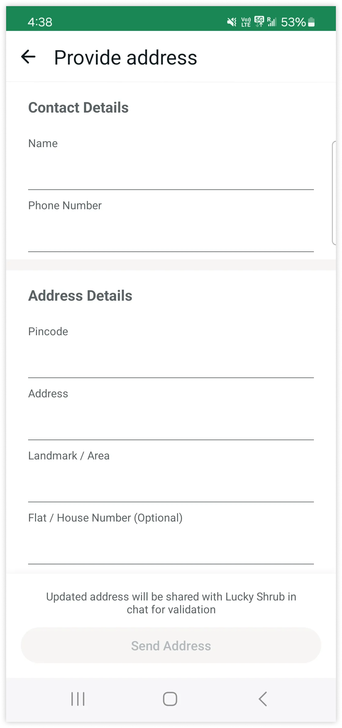 Add shipping address and select the addresses saved with the businesses or add new address. WhatsApp makes apply_shipping request when user tries to submit the address and allow businesses to check inventory and logistics based on the address provided.