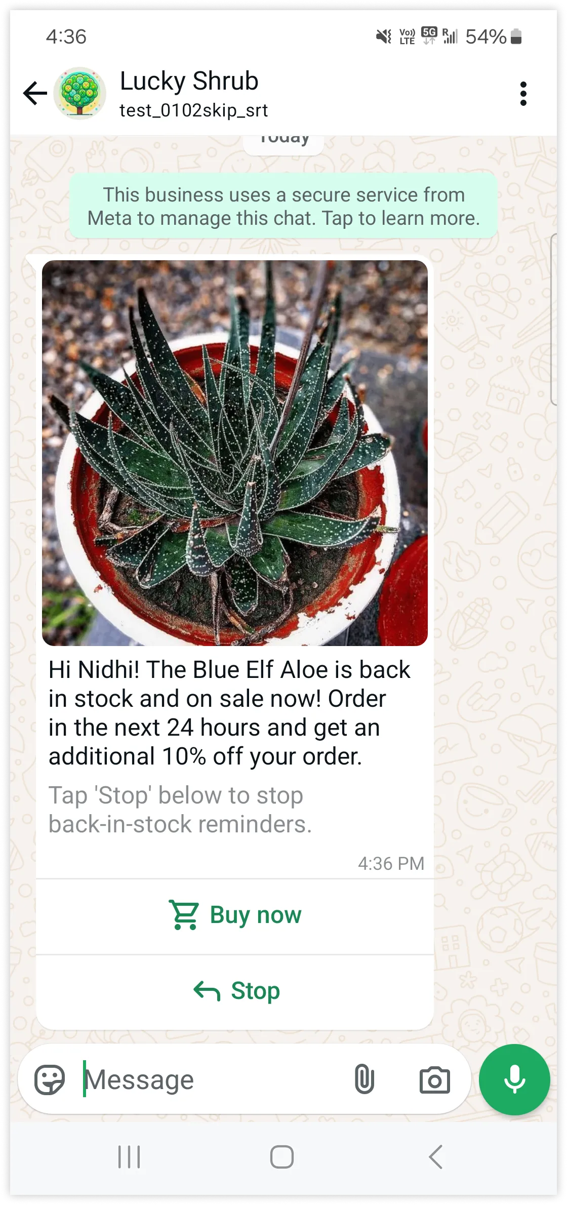 Upon completing the above steps, when business sends the checkout template with the linked payment configuration, WhatsApp enables the coupons, realtime inventory and pricing updates and allows users to apply coupons and share shipping addresses.