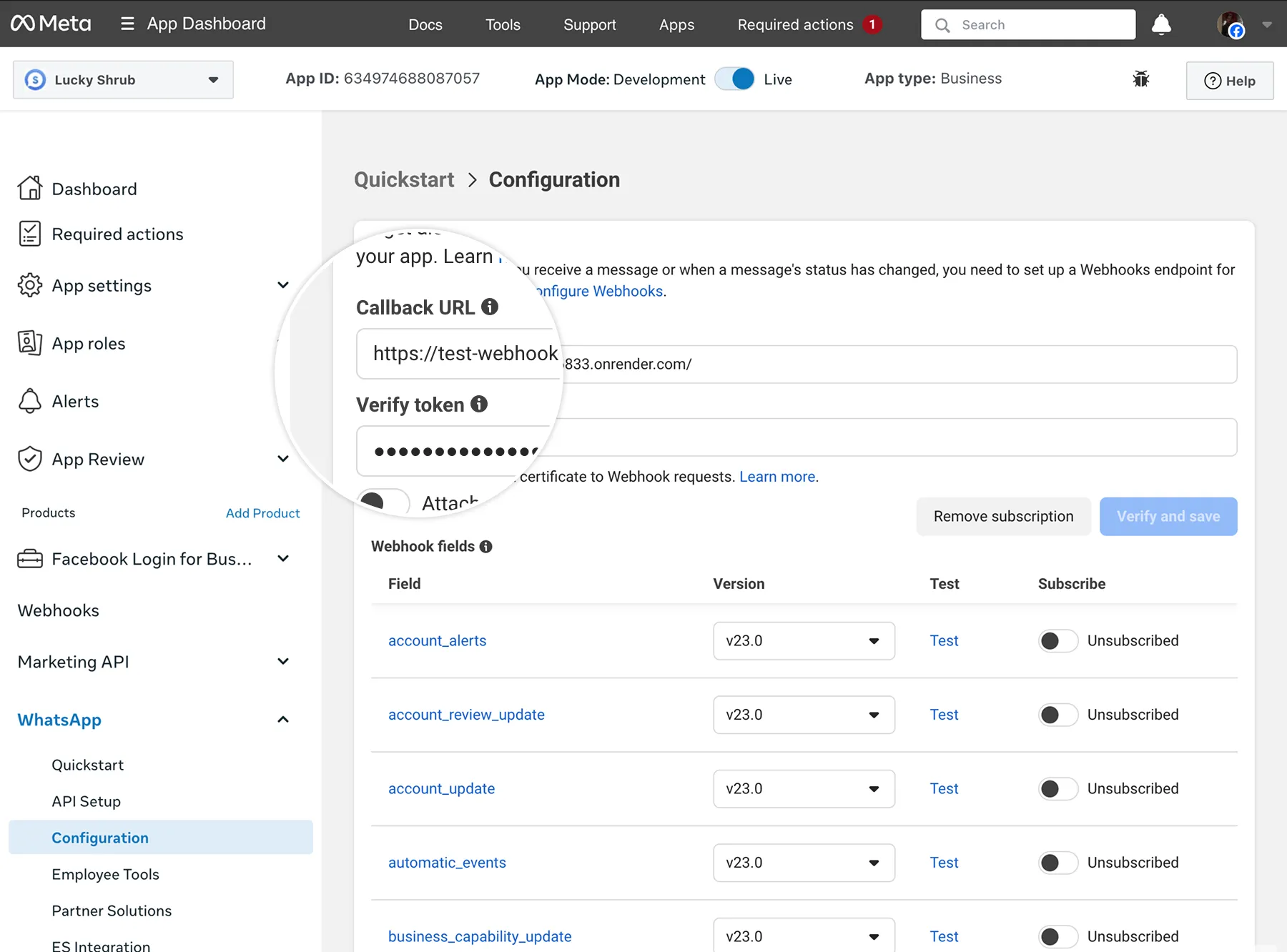 Step 3: Add your test webhook app URL to your Meta app