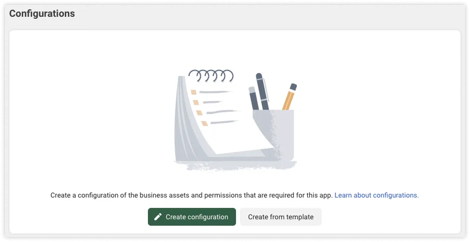 A Facebook Login for Business configuration defines which permissions to request, and what additional information to collect, from business customers who access Embedded Signup.