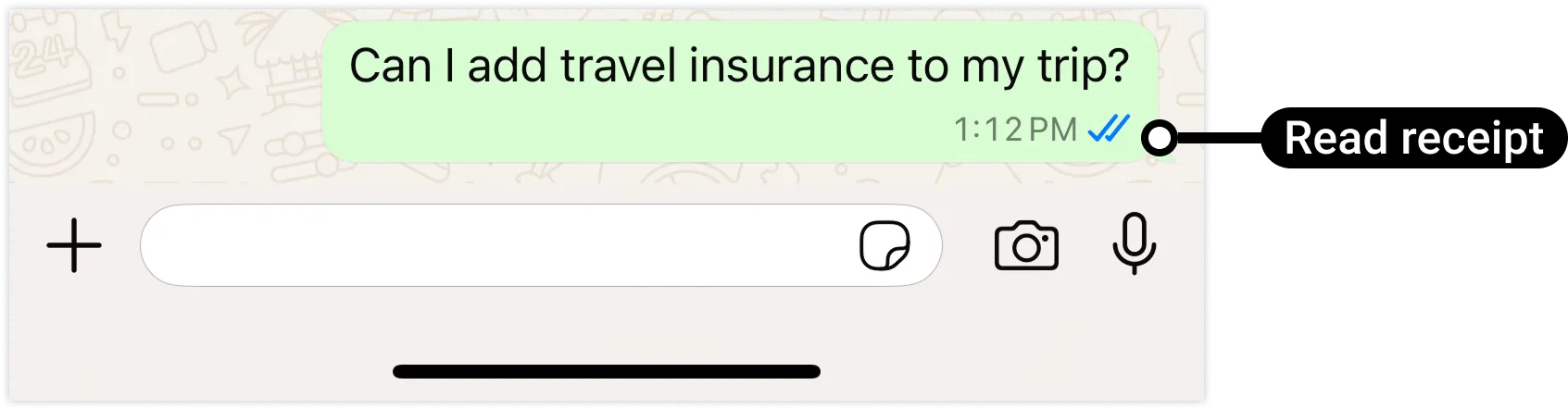 <WHATSAPP_MESSAGE_ID>String | Required. WhatsApp message ID. This ID is assigned to the messages.id property in received message messages webhooks. | wamid.HBgLMTY1MDM4Nzk0MzkVAgARGBJDQjZCMzlEQUE4OTJBMTE4RTUA |