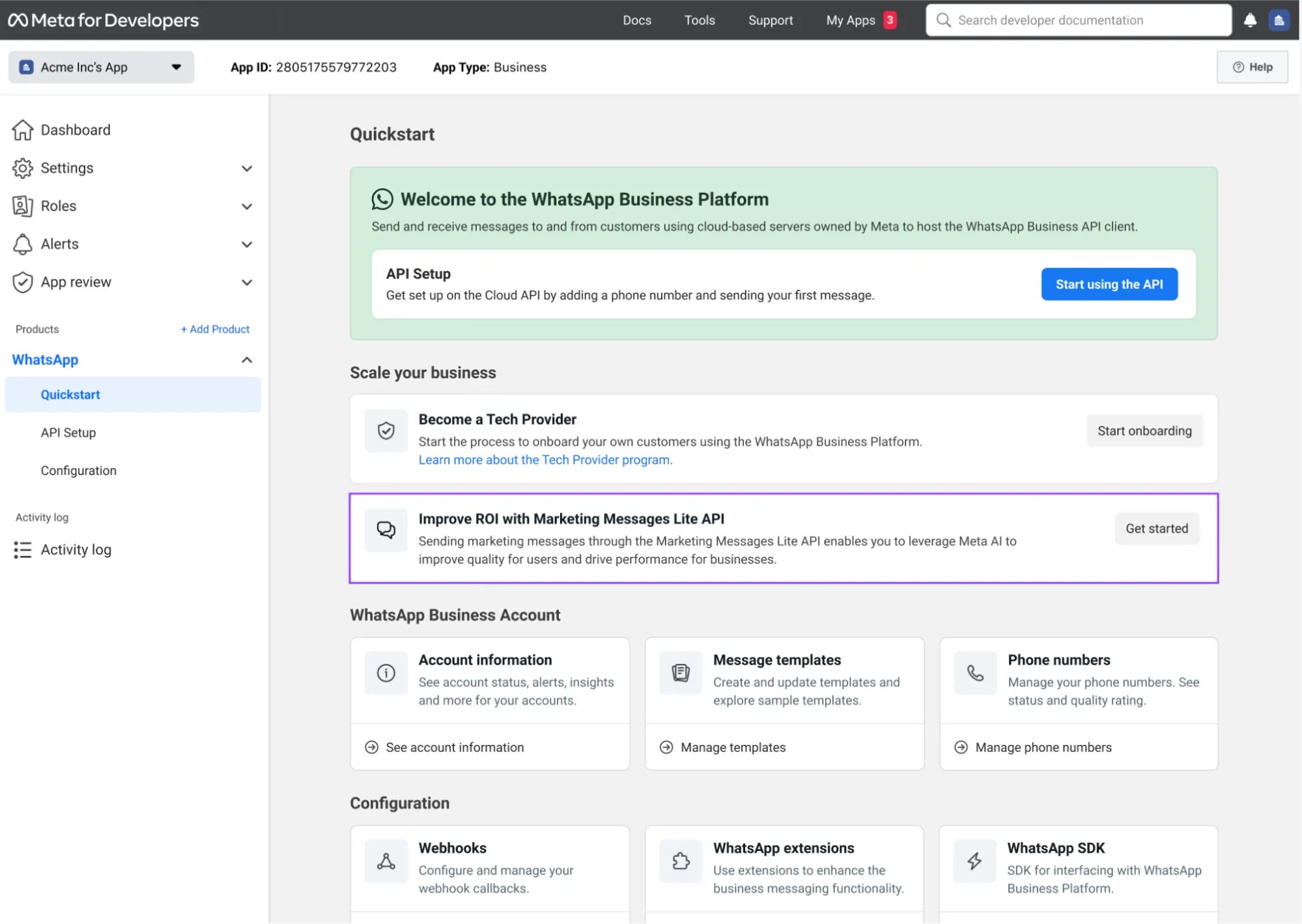 marketing_messages_lite_api_status field to get eligibility status, but this field will be deprecated at a future date, so we recommend using the method above instead.GET /<WHATSAPP_BUSINESS_ACCOUNT_ID>?fields=marketing_messages_lite_api_status