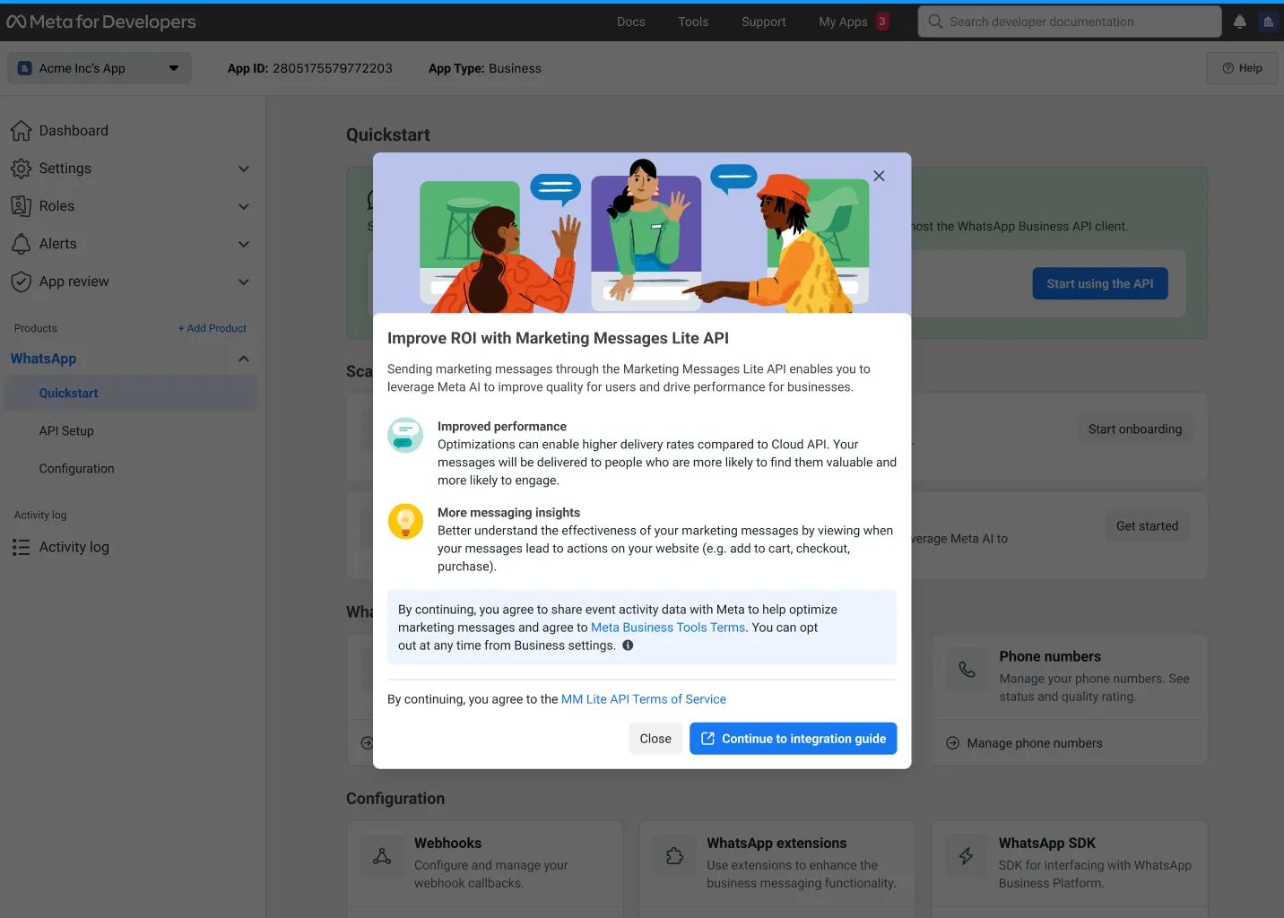 Onboarding to the Marketing Messages API for WhatsApp (MM API for WhatsApp) is a low-effort upgrade to sending marketing messages with optimizations on Cloud API. See the directions below to onboard your business, whether you integrate with the API directly or work with a partner.