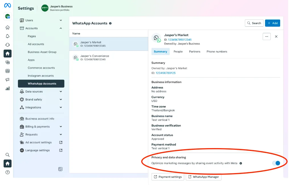 If you wish to disable sharing event activity, toggle it off via WhatsApp Business account setting.