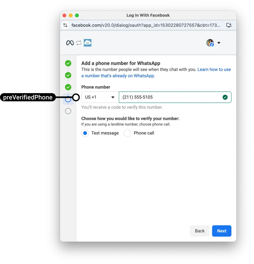 You can inject a pre-verified business phone number ID into Embedded Signup, which will cause Embedded Signup to skip the phone number addition and phone number verification screens.
