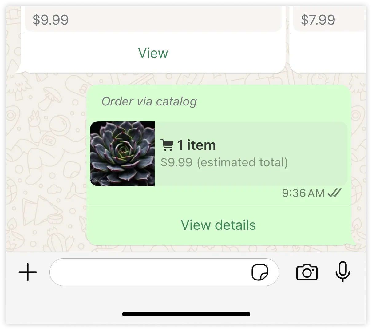 When a WhatsApp user taps the View button, they can view more information about the product, add the product to a shopping cart, and place an order, all without leaving the WhatsApp client experience. If instead you prefer to send the user to your website when they click the button, see Media Card Carousel Templates.
