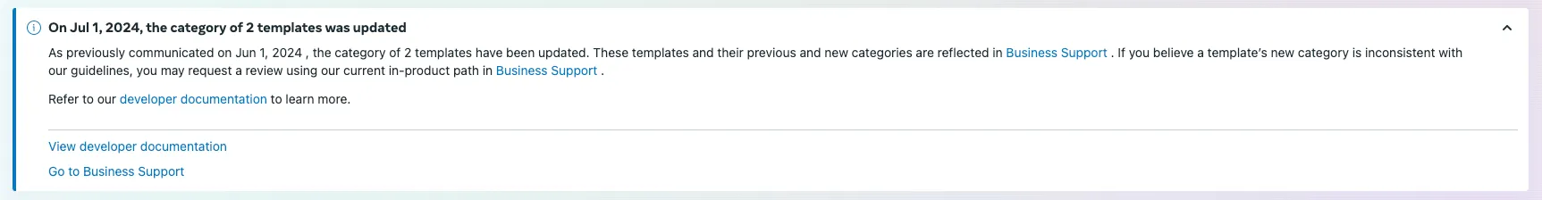 This process has been in effect since June 2023, when the marketing, utility and authentication template categories were introduced.