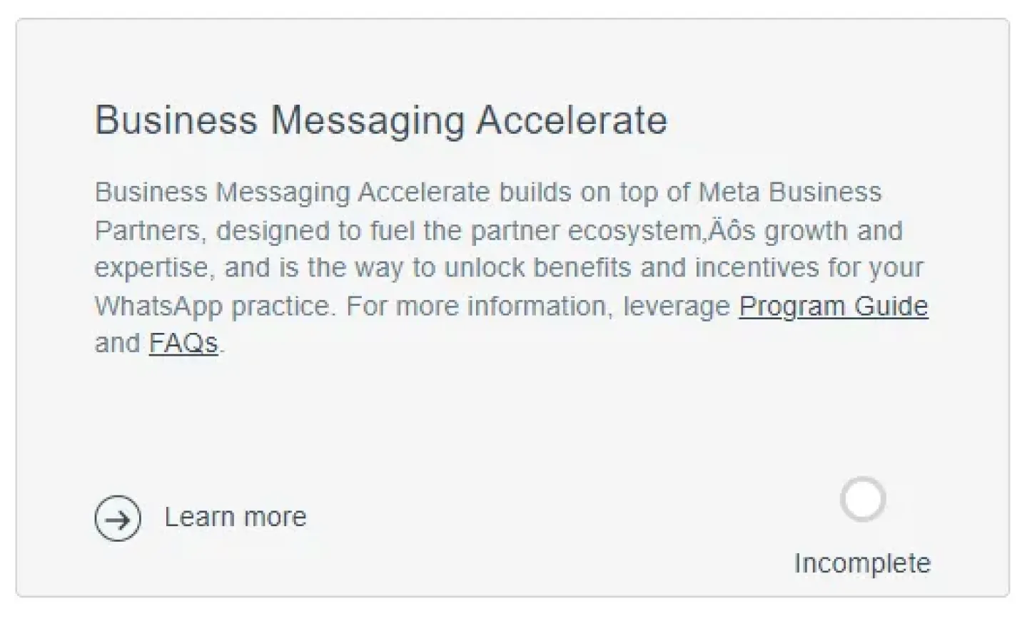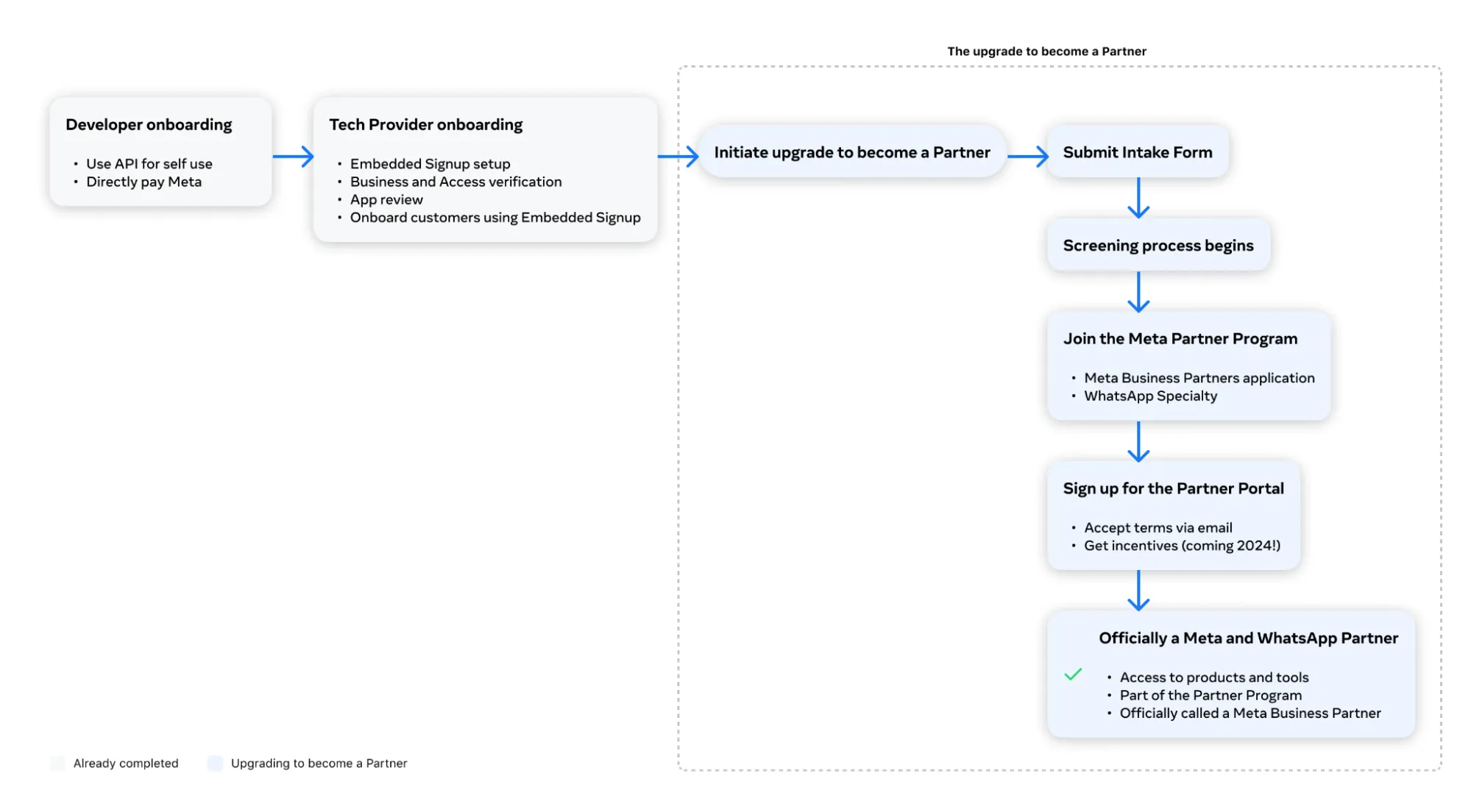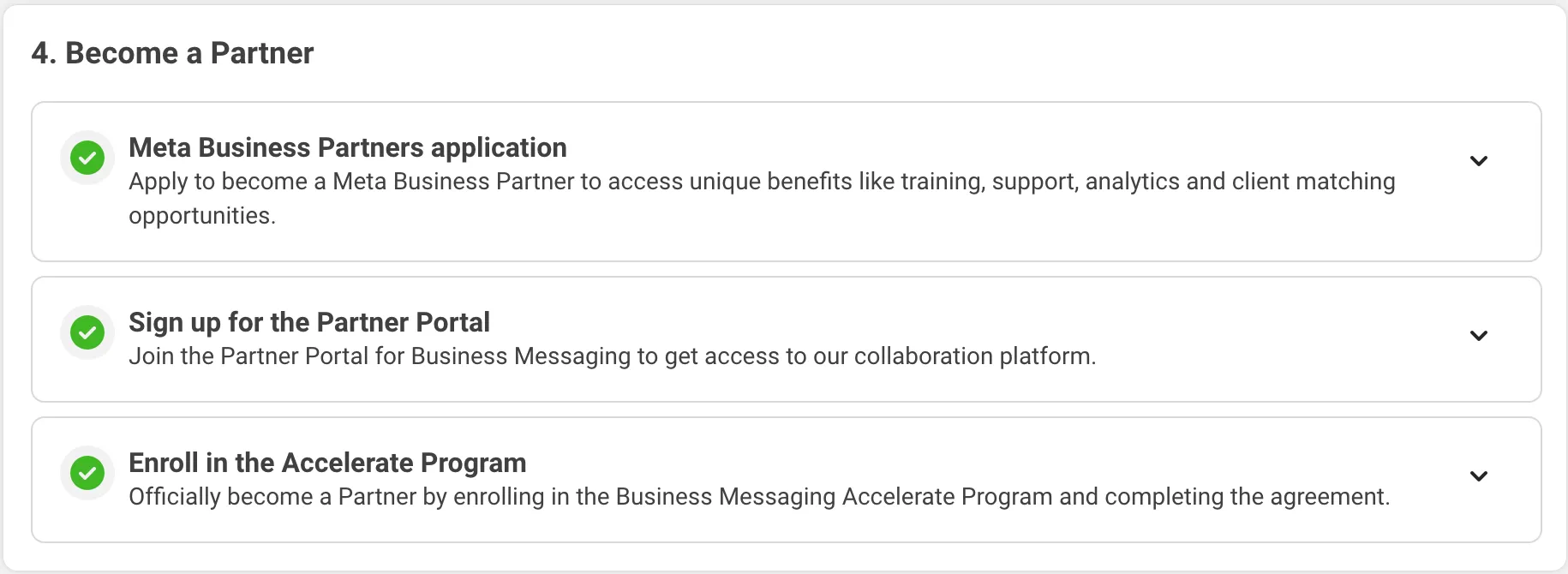 When you return to the Onboarding page in Meta for Developers, if all steps are complete, you are officially a Tech Partner!