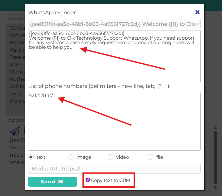 In the bottom field, enter the client’s number you want to send it to.