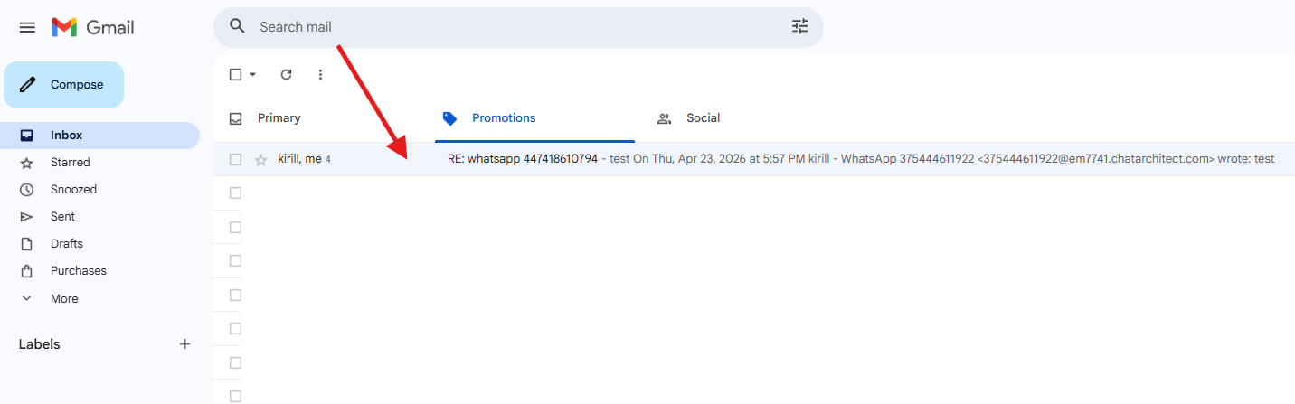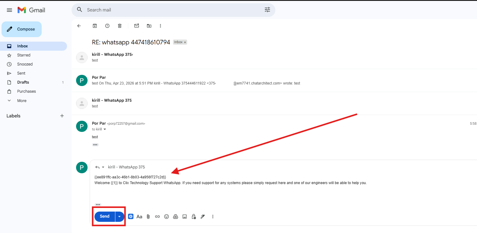 2. After that, go to Email, select the conversation you need to initiate, open it, and paste the template text into the chat thread (including the ID — it is only visible to you; the client will not see it).