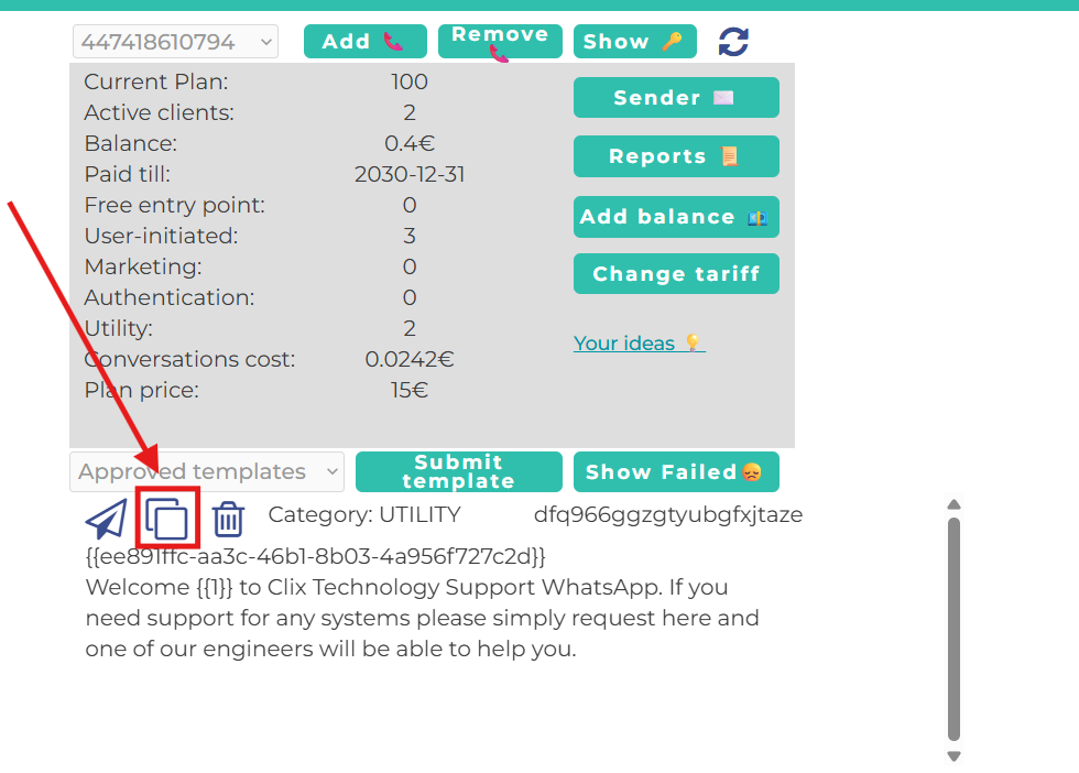 1. First of all, you need to open your personal account https://wtargeted.com/settings and copy a template by using "copy" button